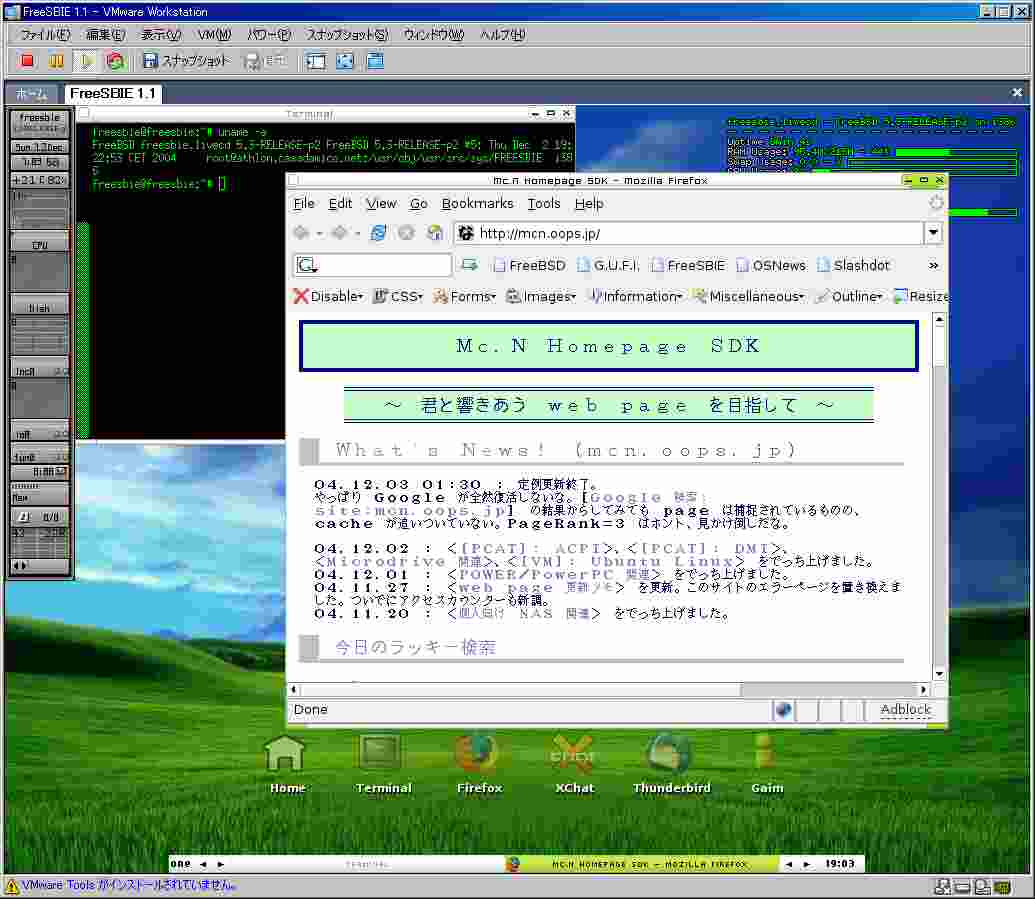 <Home> → <Development Room> → <[VM]: Virtual Machine 総合窓口> → <[VM]: FreeSBIE 1.1>