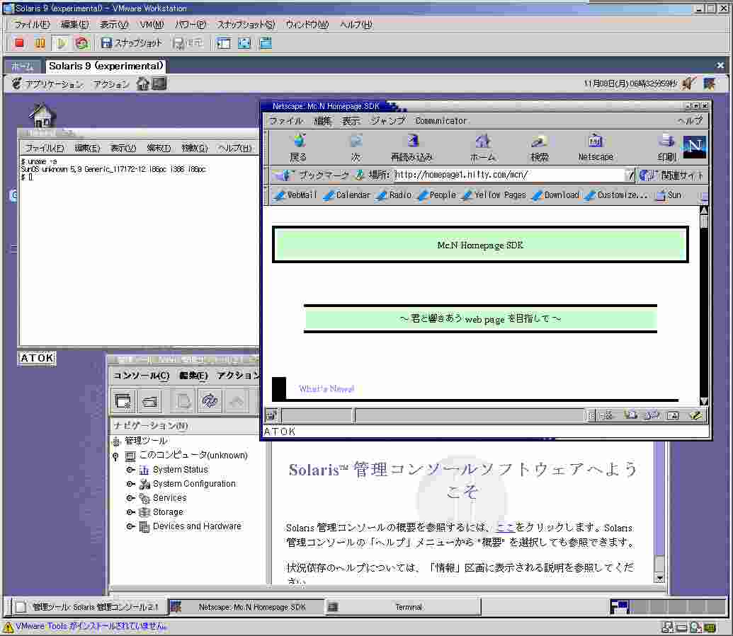 <Home> → <Development Room> → <[VM]: Virtual Machine 総合窓口> → <[VM]: Solaris 9>