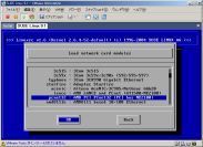 『Main menu』内の『Kernel modules (hardware drivers)』→『Load network card modules』の中の『pcnet32』を選択します。『Module "mii" loaded successfully!』→『Module "pcnet32" loaded successfully!』と表示されるはずです。