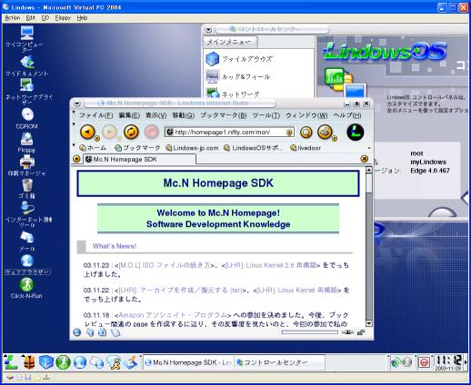 - LindowsOS 4.0 日本語版 on Virtual PC 2004