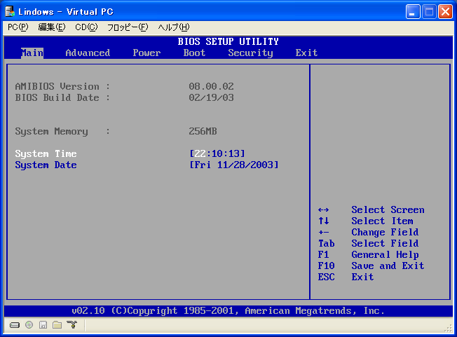 VPC2004 → 「BIOS : AMIBIOS : 08/14/03 19:41:02 Ver: 08.00.02」